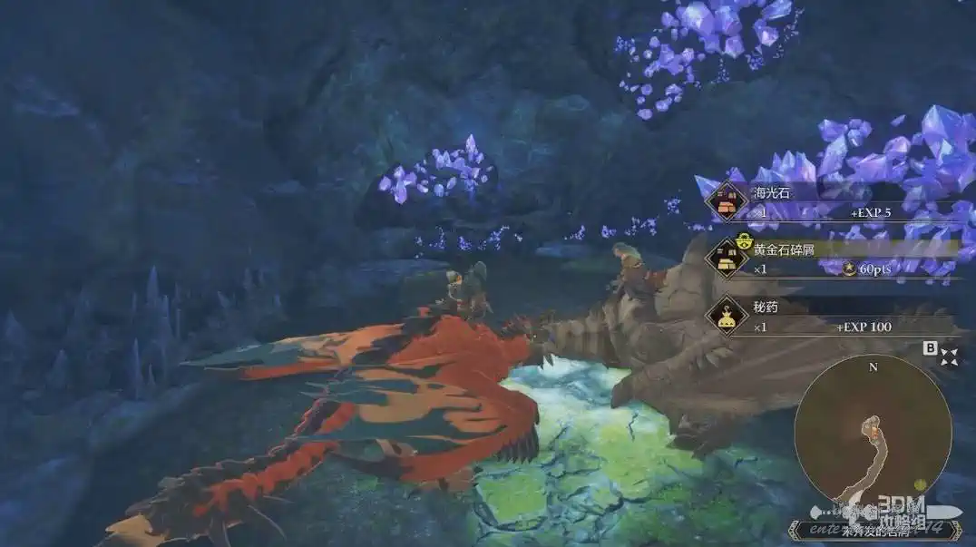戰鬥勝利可以獲得經驗和怪物素材。經驗可以幫我們人物和隨行獸升級,怪物素材可以用來生產或強化裝備。