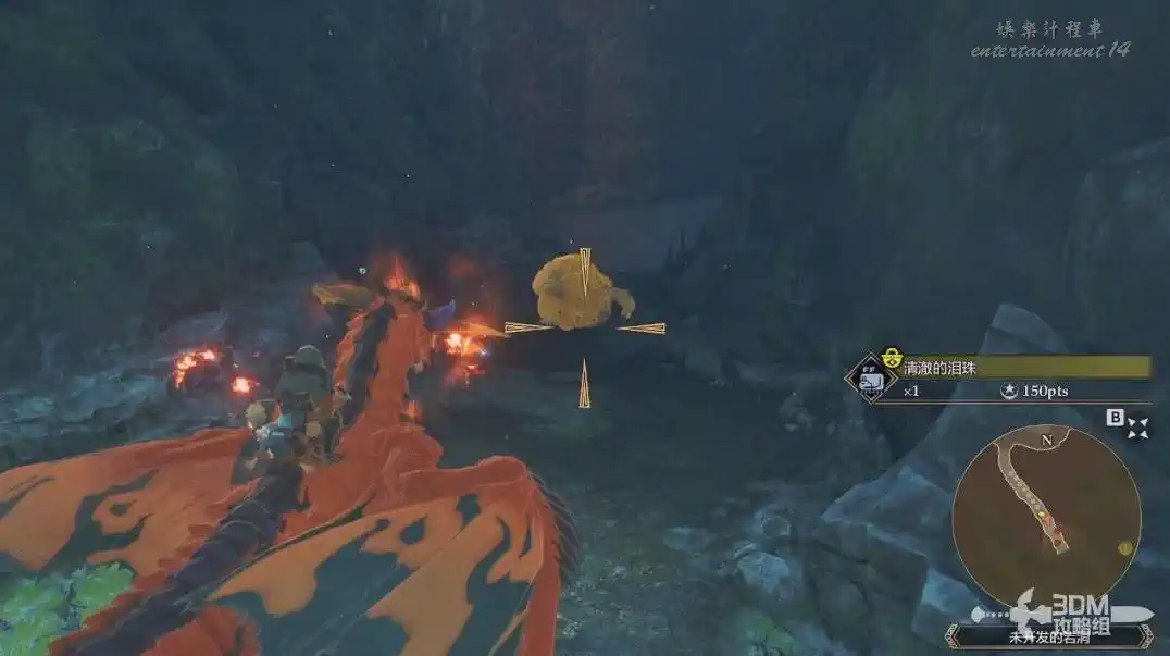 準備工作做完我們準備去找瀕危怪物的蛋。來到目標點後收集一下附近的三個光點,不能被中間的侵獸發現我們。