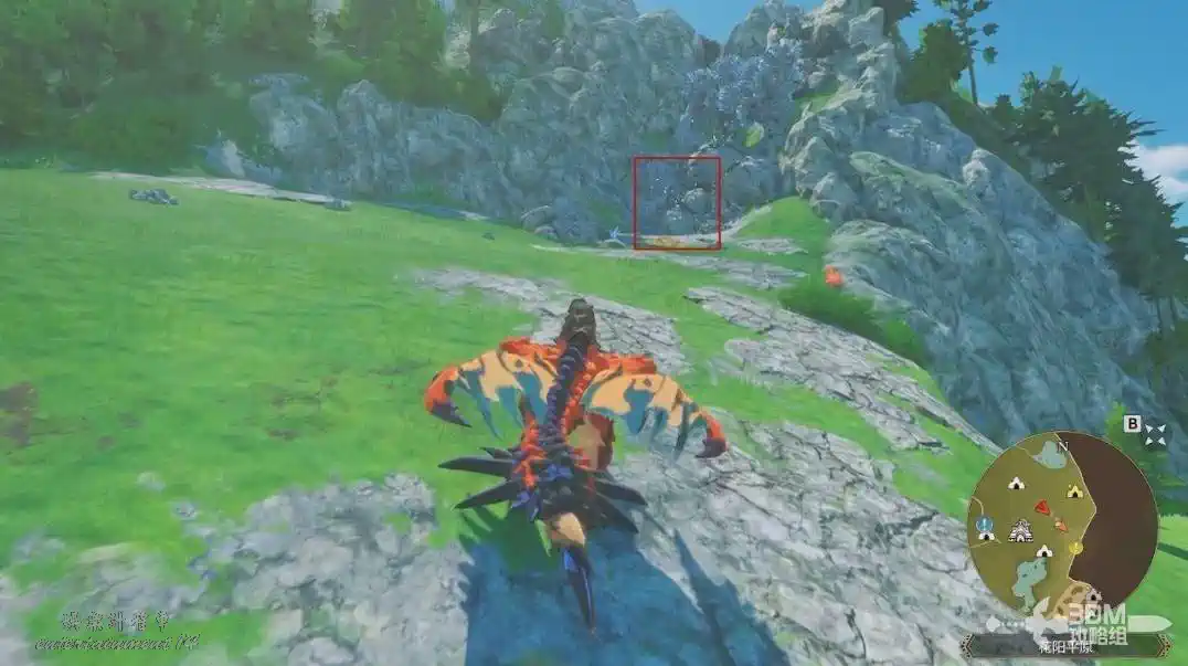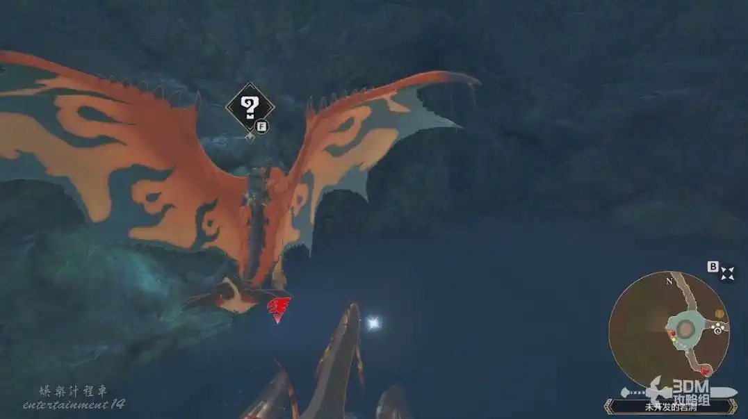 我們可以先去左邊,飛過去,裡面有一個寶箱和一個巢穴。