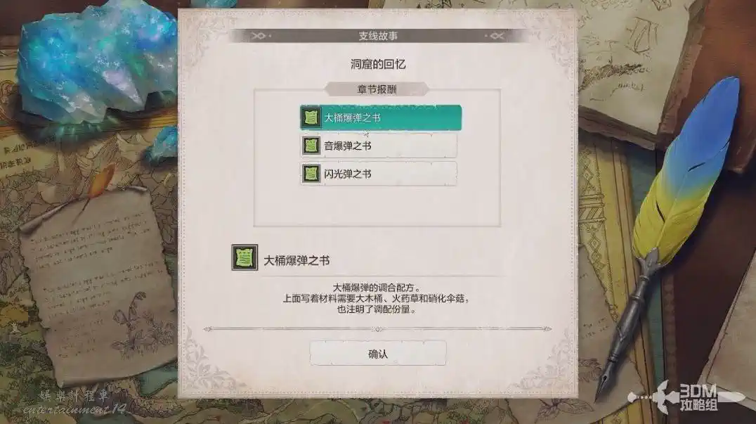 製作成功後繼續往裡面走。進來就有一個寶箱可以打開,裡面有“魔幻笛之書”。
