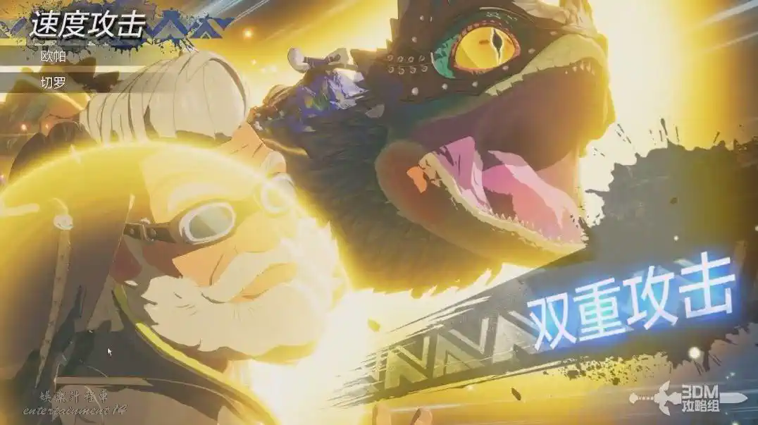 猜拳克制對方,使用雙重攻擊,將它的龍氣槽打空,它會進入破防狀態倒地。這個時候我們能按空白鍵發動總攻擊“同步連擊”,造成大量破防傷害。