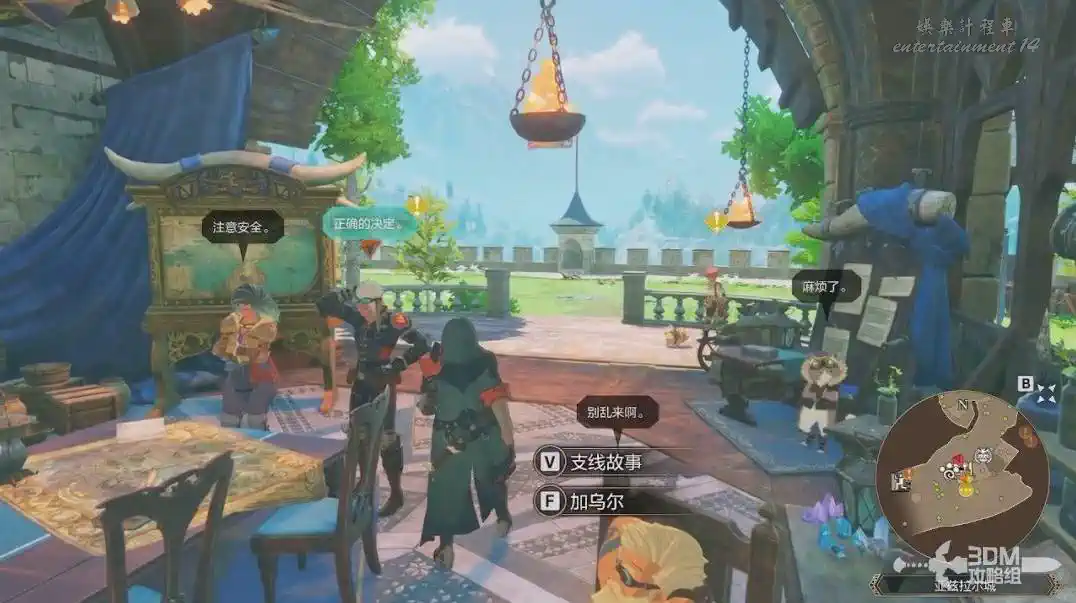 進來後觸發劇情。我們的父王也就是國王,準備讓我們參加畢尤裡恩使者的會談。