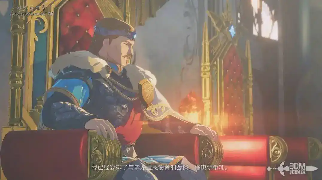 進來後觸發劇情。我們的父王也就是國王,準備讓我們參加畢尤裡恩使者的會談。
