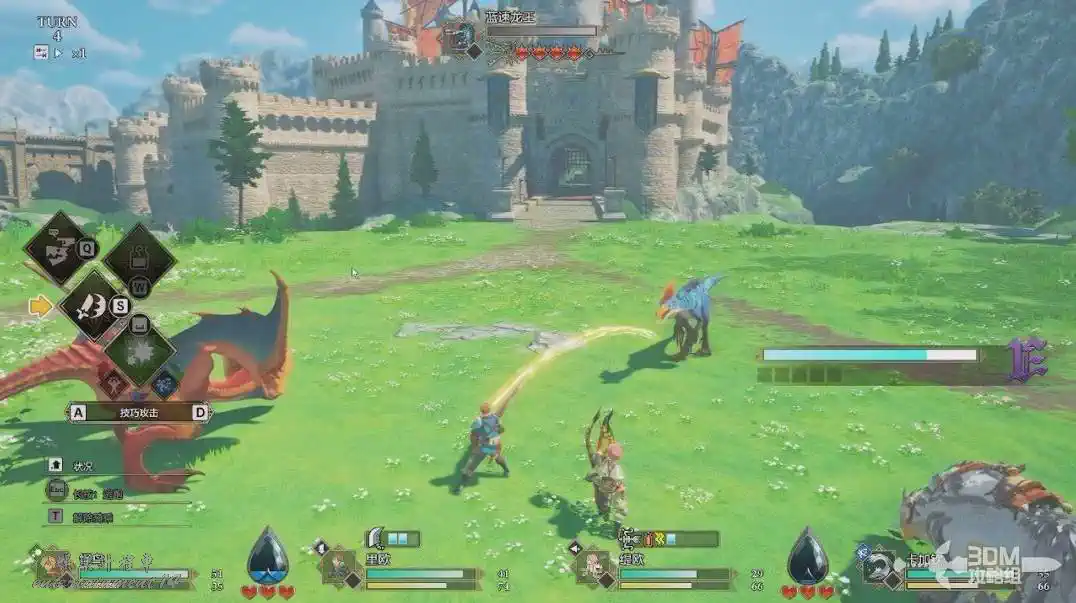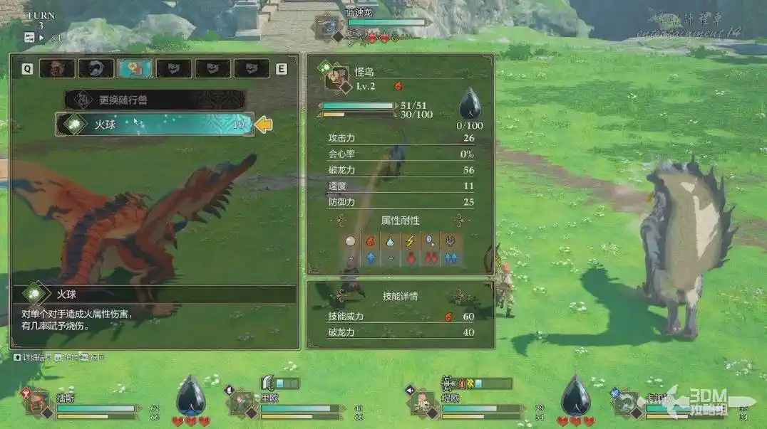 在戰鬥的時候我們還可以選擇其它的隨行獸參戰,但是一回合只能更換一次。我們可以手動命令它攻擊,也可以自動攻擊,自動攻擊會有更多地牽絆槽。