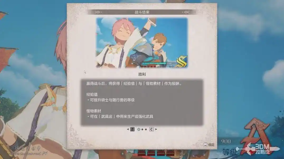 戰鬥勝利可以獲得經驗和怪物素材。經驗可以幫我們人物和隨行獸升級,怪物素材可以用來生產或強化裝備。