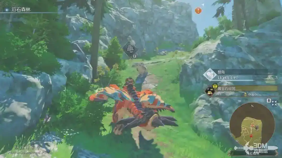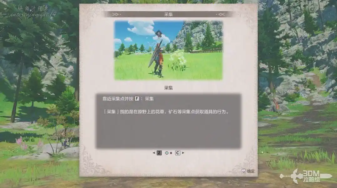 接著往目標點的森林裡走。進來後有採集教學,我們可以按F鍵採集。