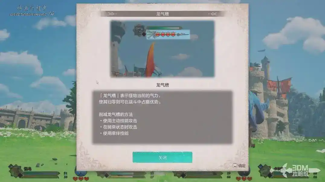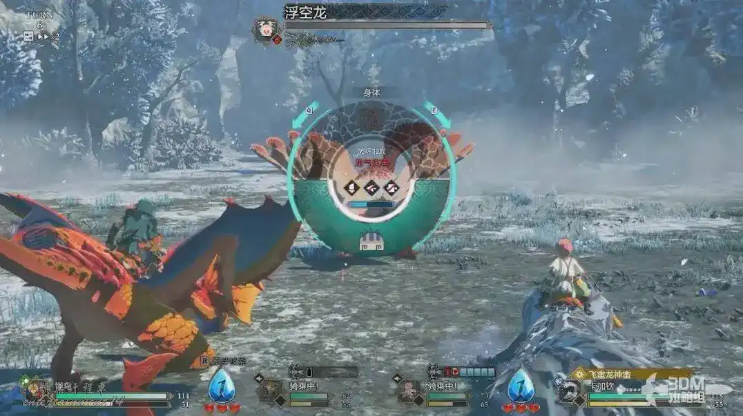 把浮空龍打破防後,我們能看到人物左邊的“淚滴”攢滿了,這個就是牽絆槽。按R鍵可以騎乘。