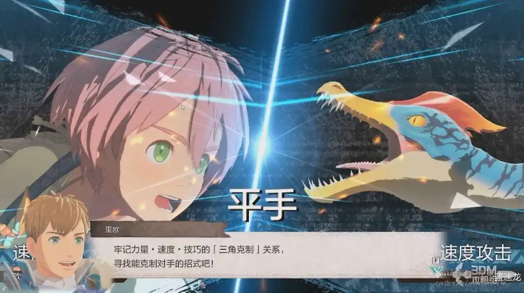 接下來會出現另一隻怪物,藍速龍王。系統會教我們怎麼使用技能。
