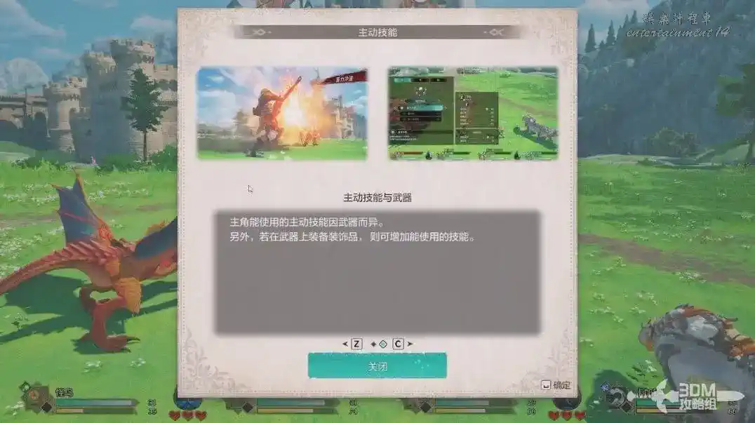 我們現在進入戰鬥後系統會給我們介紹現在使用的武器特色,帶不同的武器會有不同介紹,玩家可以自己看一下。