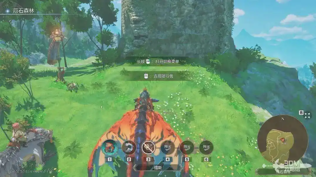 高台需要我們使用一個有攀爬能力的隨行獸,長按滑鼠右鍵可以切出切換功能表,選擇2號隨行獸。