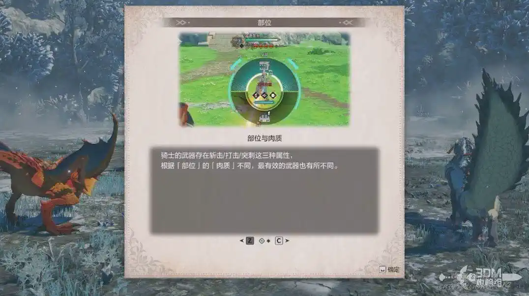 人物的武器存在斬擊/打擊/突刺這三種屬性,根據「部位」的「肉質」不同,最有效的武器也有所不同。浮空龍可以使用突刺武器將它打下來。