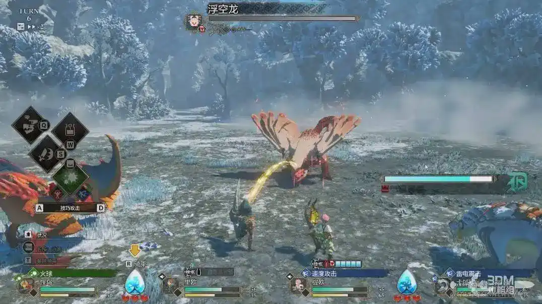 這裡需要說明一下,我們只有在“猜拳”的時候才需要注重這個猜拳克制關係。不是猜拳的回合我們儘量選擇克制怪物的屬性,比如浮空龍弱火和雷,我們可以優先使用這兩個屬性攻擊它。