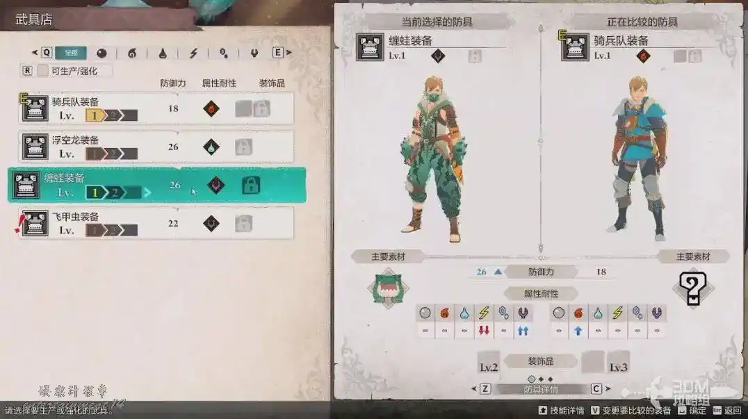 有材料的可以先做一套裝備再出門,前期直接選屬性高的就好。