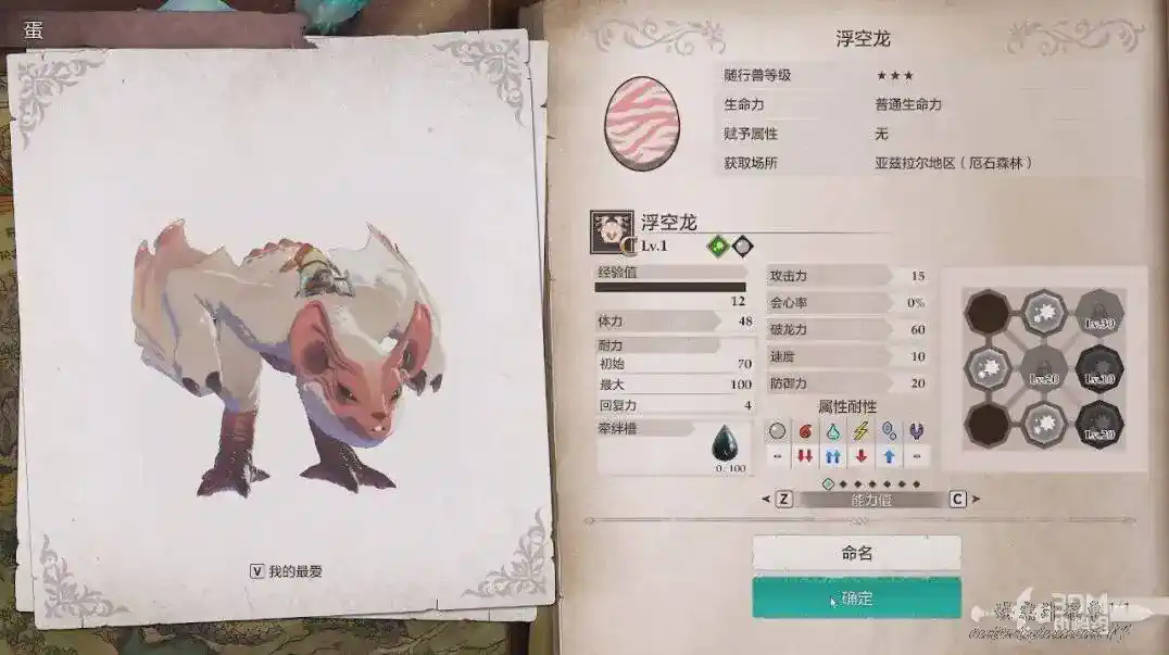 擊敗後進入劇情,我們回去孵蛋,這個蛋是固定孵出浮空龍的。