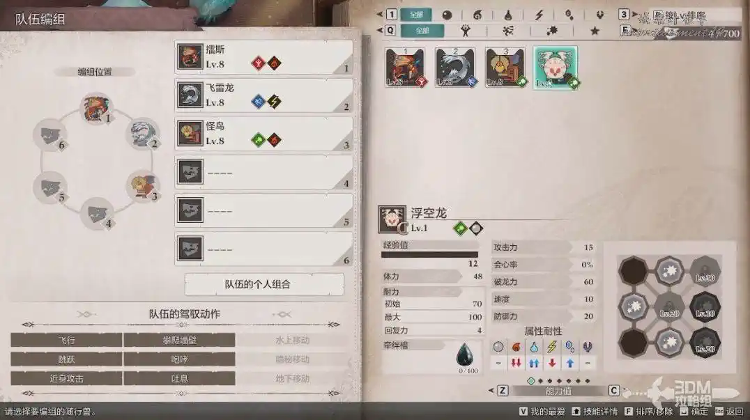 我們可以將剛才獲得的浮空獸編入隊伍。