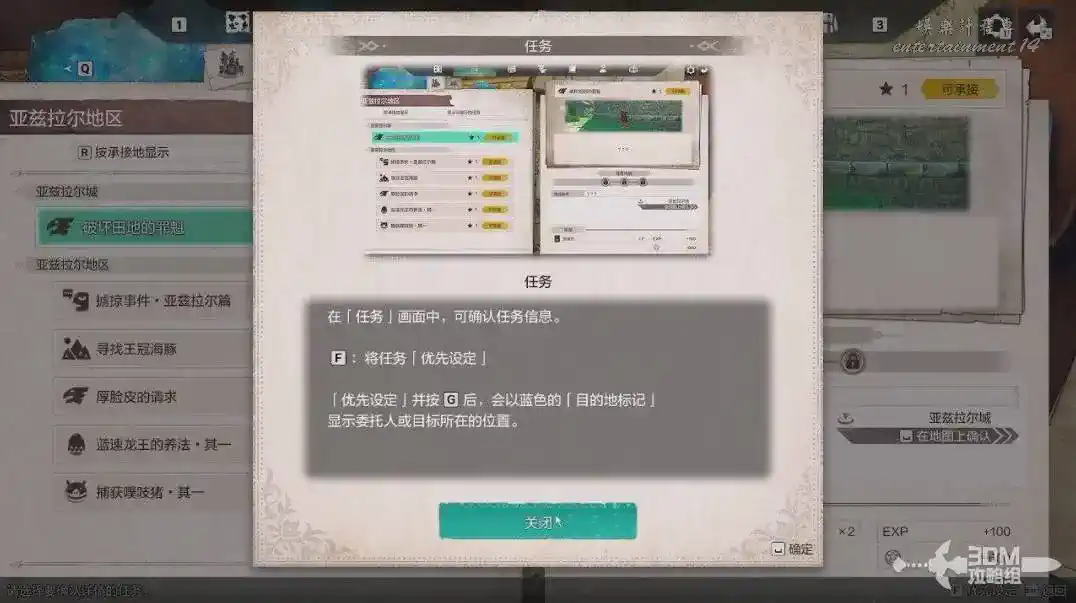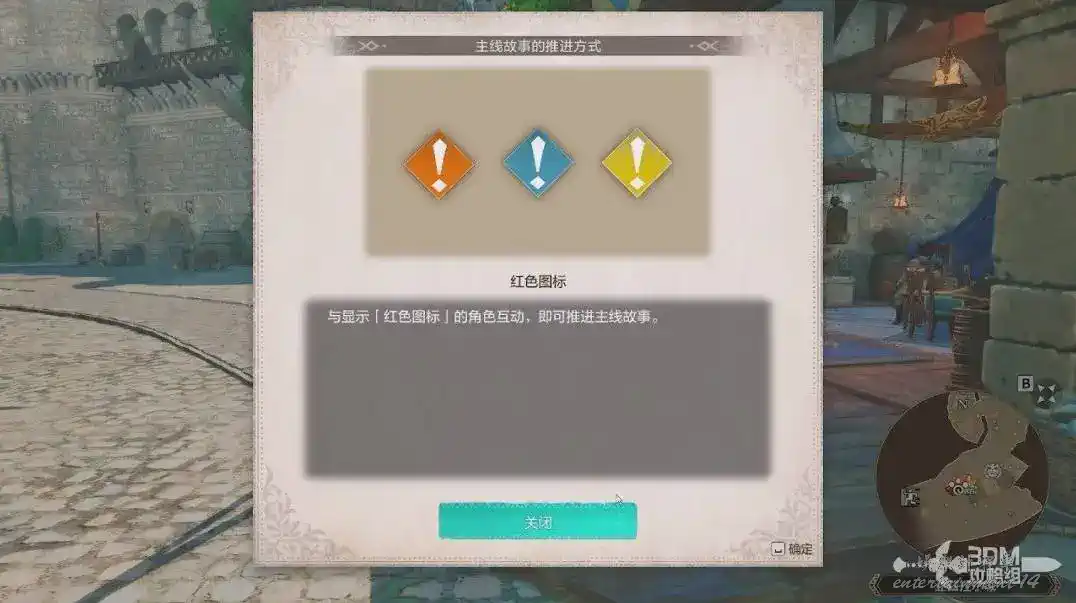 回來後系統會提醒我們一些圖示的區別。主線是紅色的,支線是藍色的,黃色是角色支線。