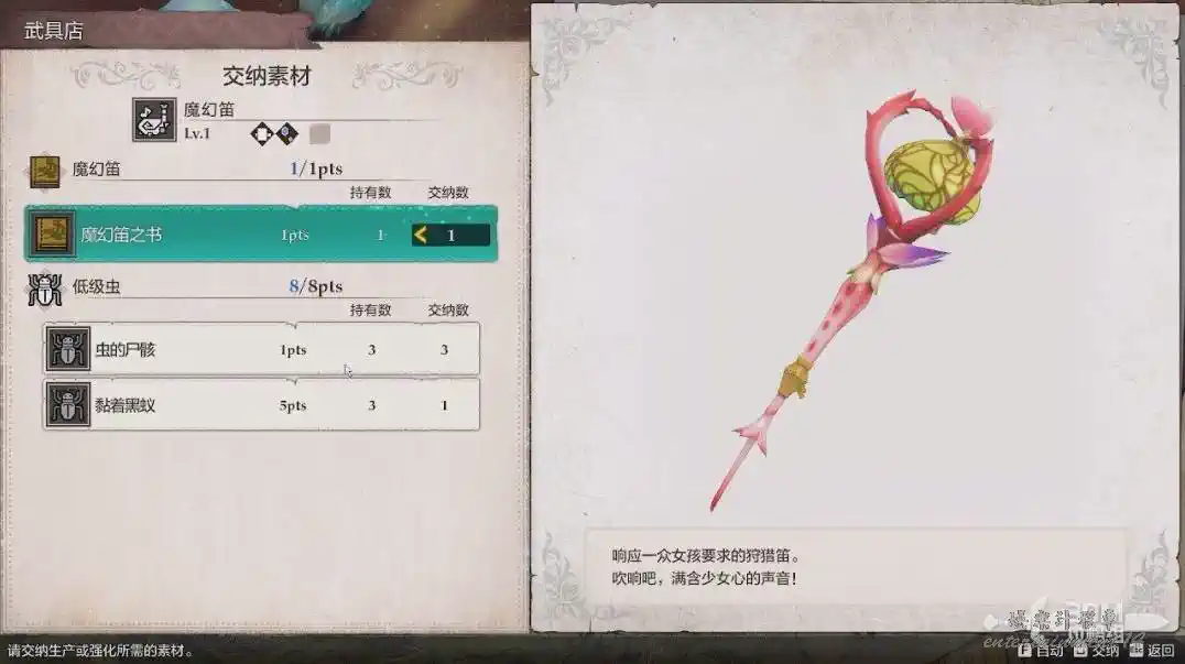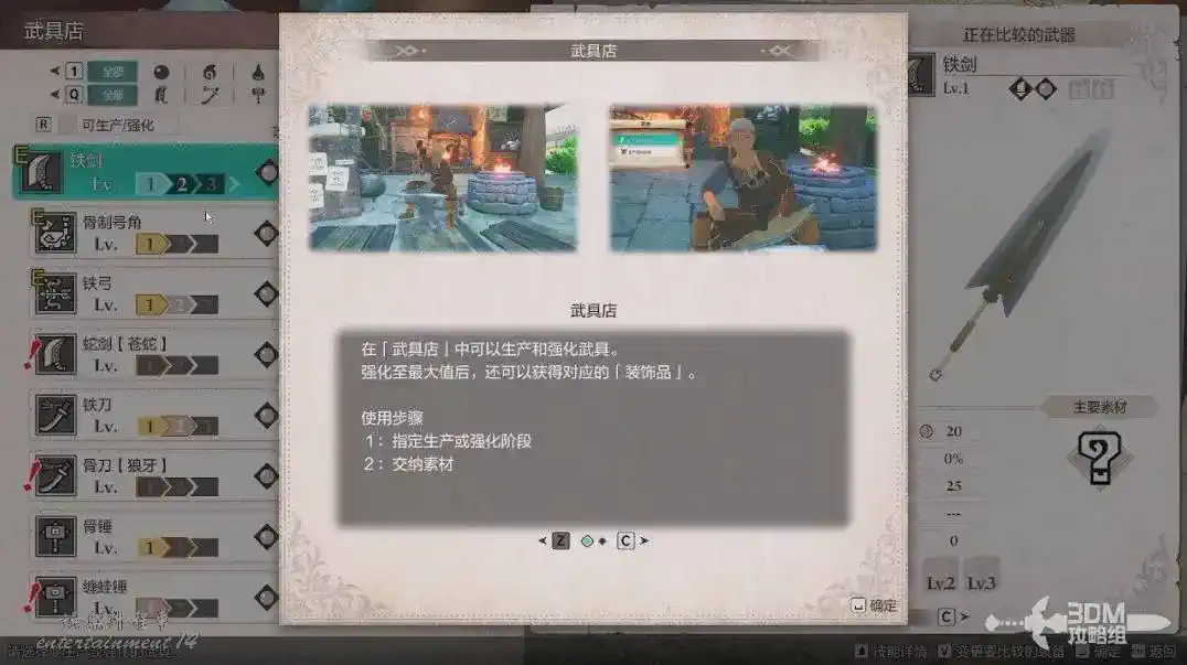 想製作武器需要提供所有制作素材。沒收集到的會以“???”顯示。