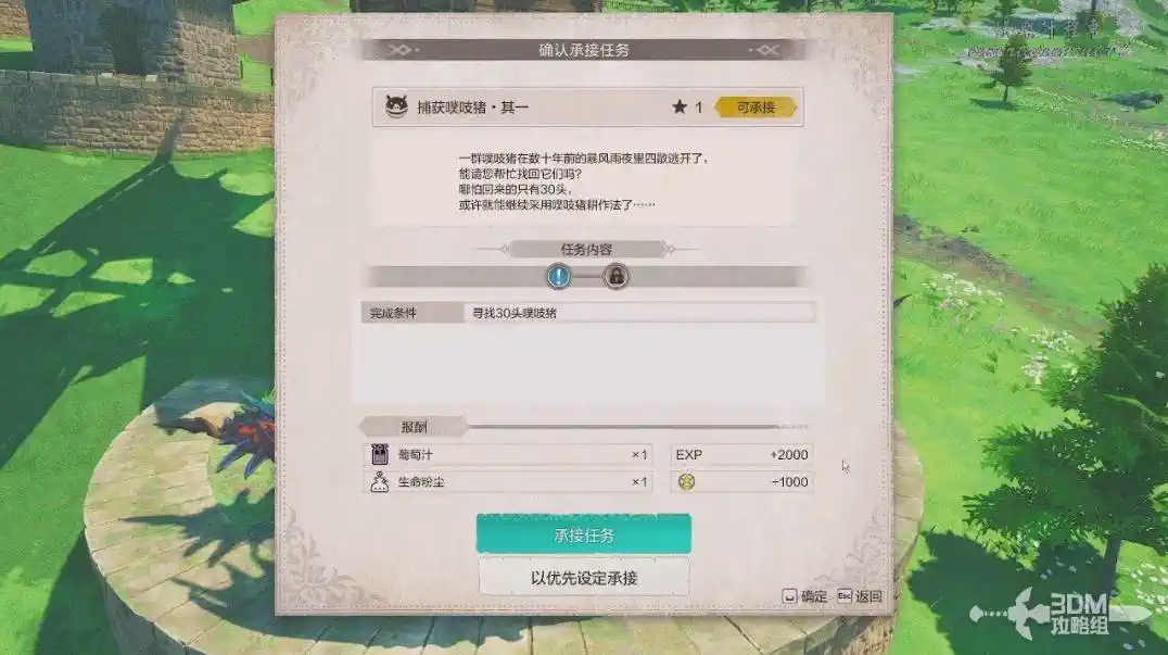 這個任務需要耗費的時間較長,我們可以先接了再隨緣做,是讓我們收集30頭小豬的。