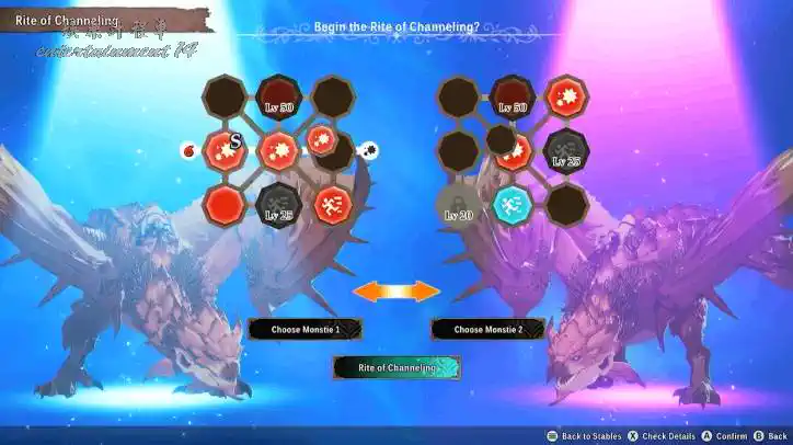 隨著劇情推進,你還將解鎖在馬廄中使用引導儀式的能力。這樣你就能在兩個怪物之間轉移基因。具體來說,你可以從備用的怪物身上提取好基因,然後加入優化後的怪物身上。