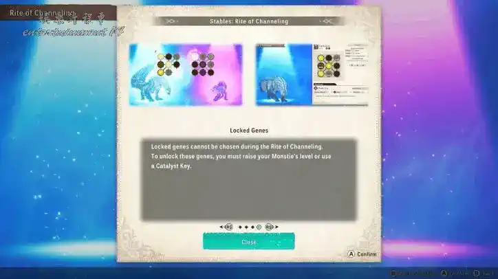 有些基因槽是鎖定的,阻止你將更多基因轉移到怪物身上。要解鎖這些,你必須升級一隻怪物,解鎖一個基因,或者使用催化鑰匙,解鎖一個免費基因槽。