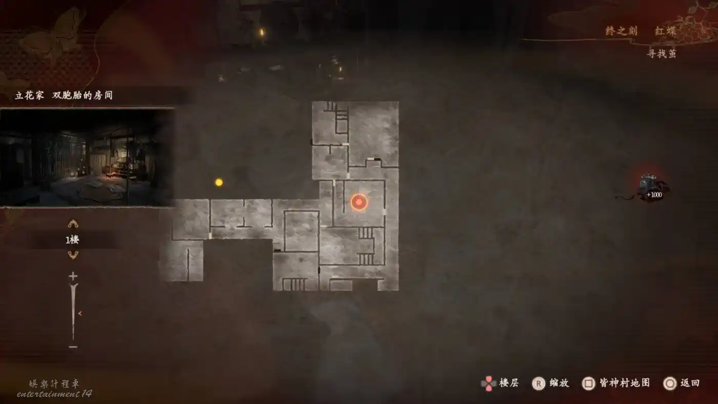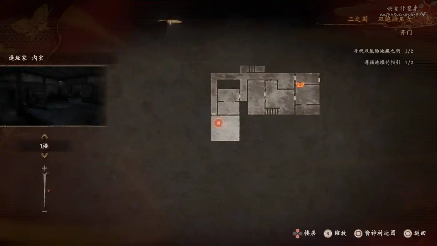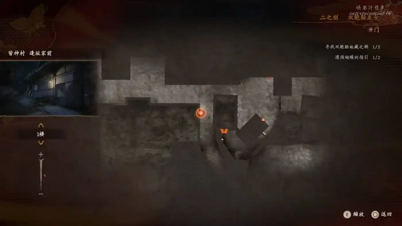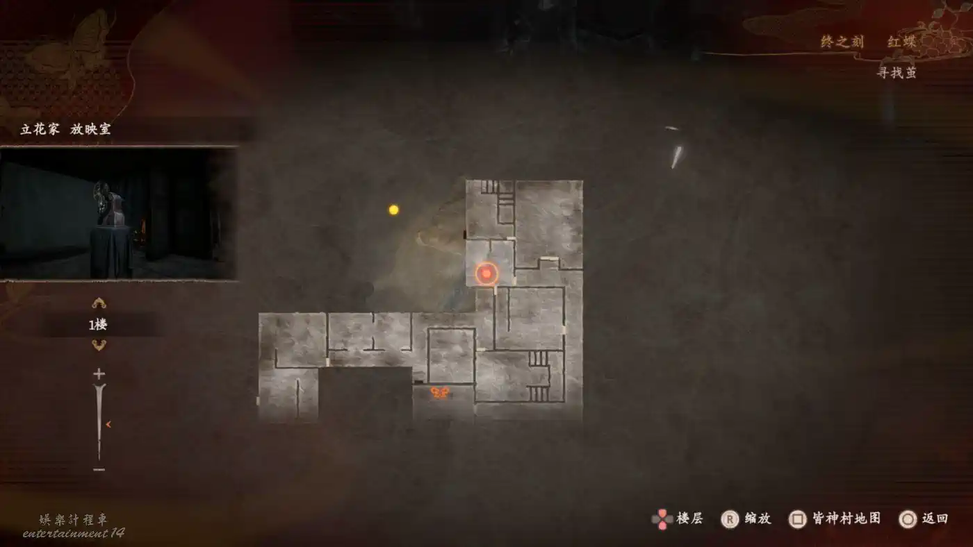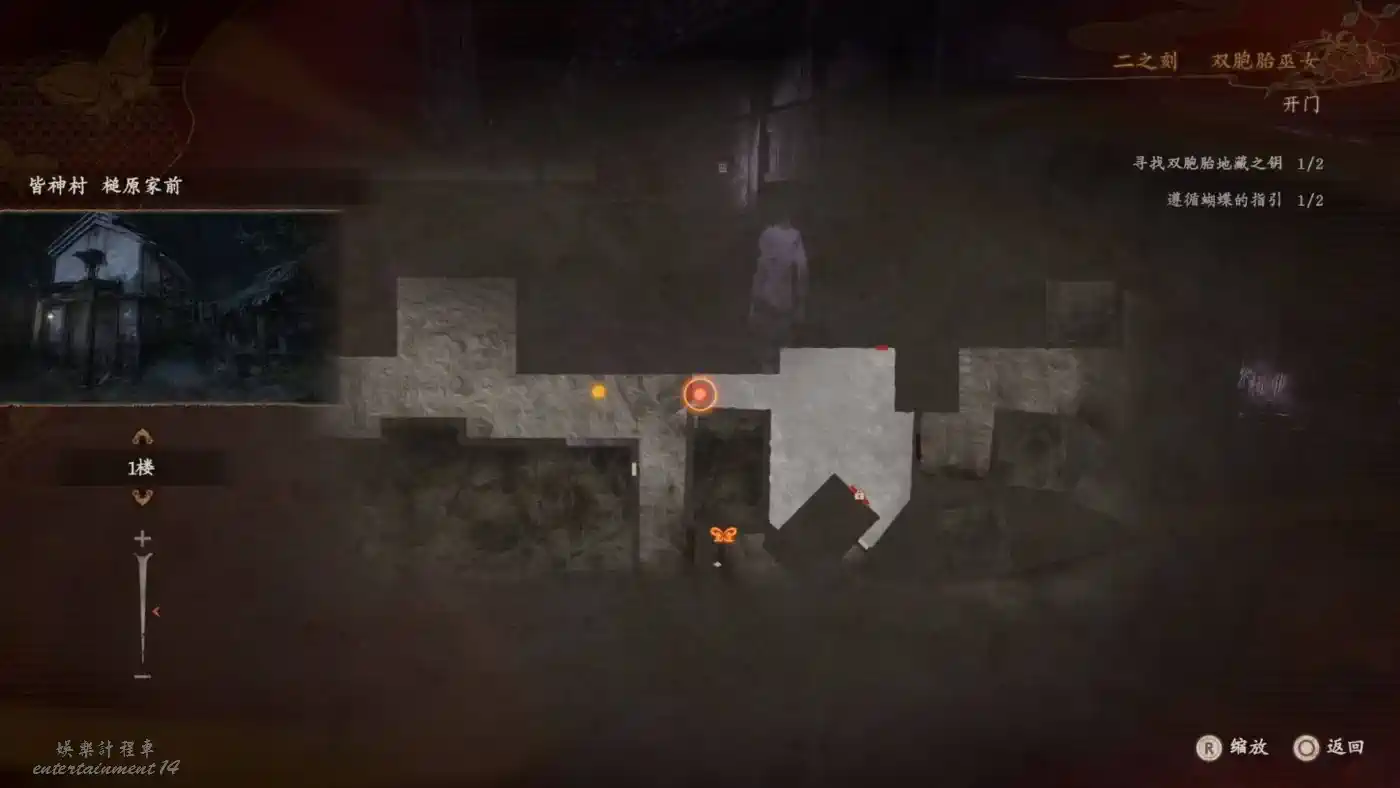 在【黑澤家 雛壇房】隔著屏風可以拍到練習中的雙胞胎,前往這個浮靈所在的位置可以撿到【畫有蝴蝶的日記 五】
