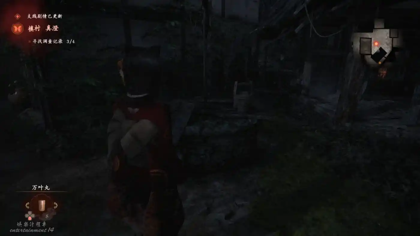 繼續跟隨浮靈來到【逢阪家 中庭】,有一處強制戰點,完成後得到【碎掉的黝簾石】。