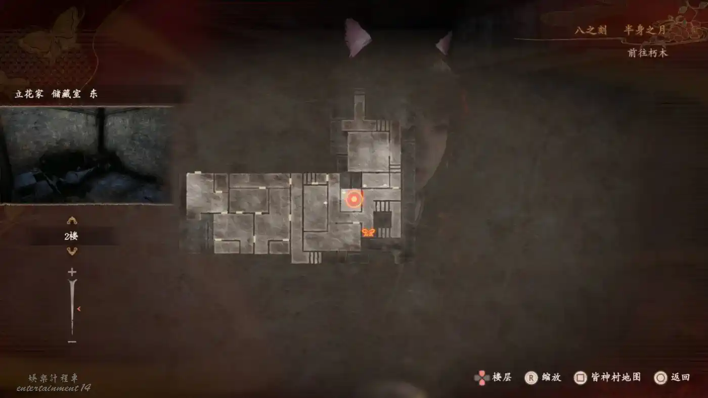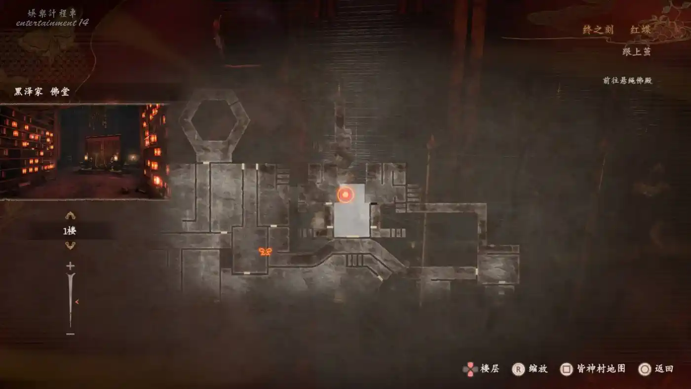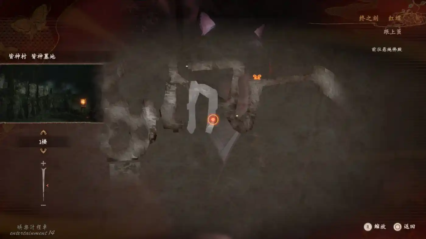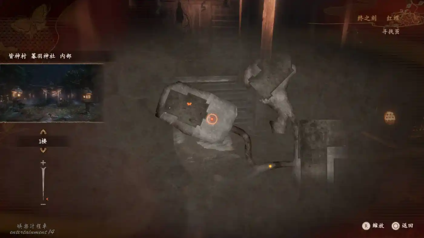 前往鍈火堂(必須蹲走從後門進入),在一樓佛殿可以用曝光濾鏡拍到一處地窖入口。