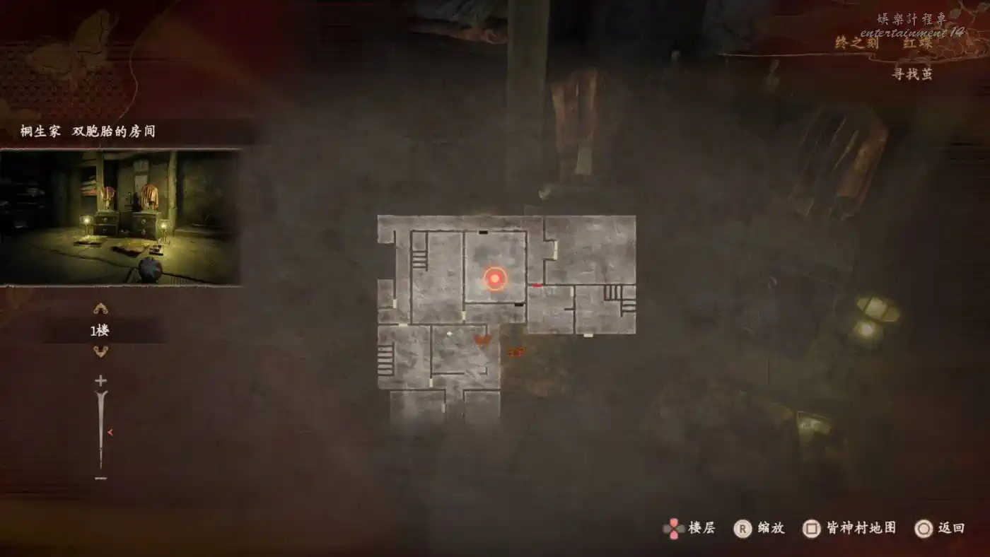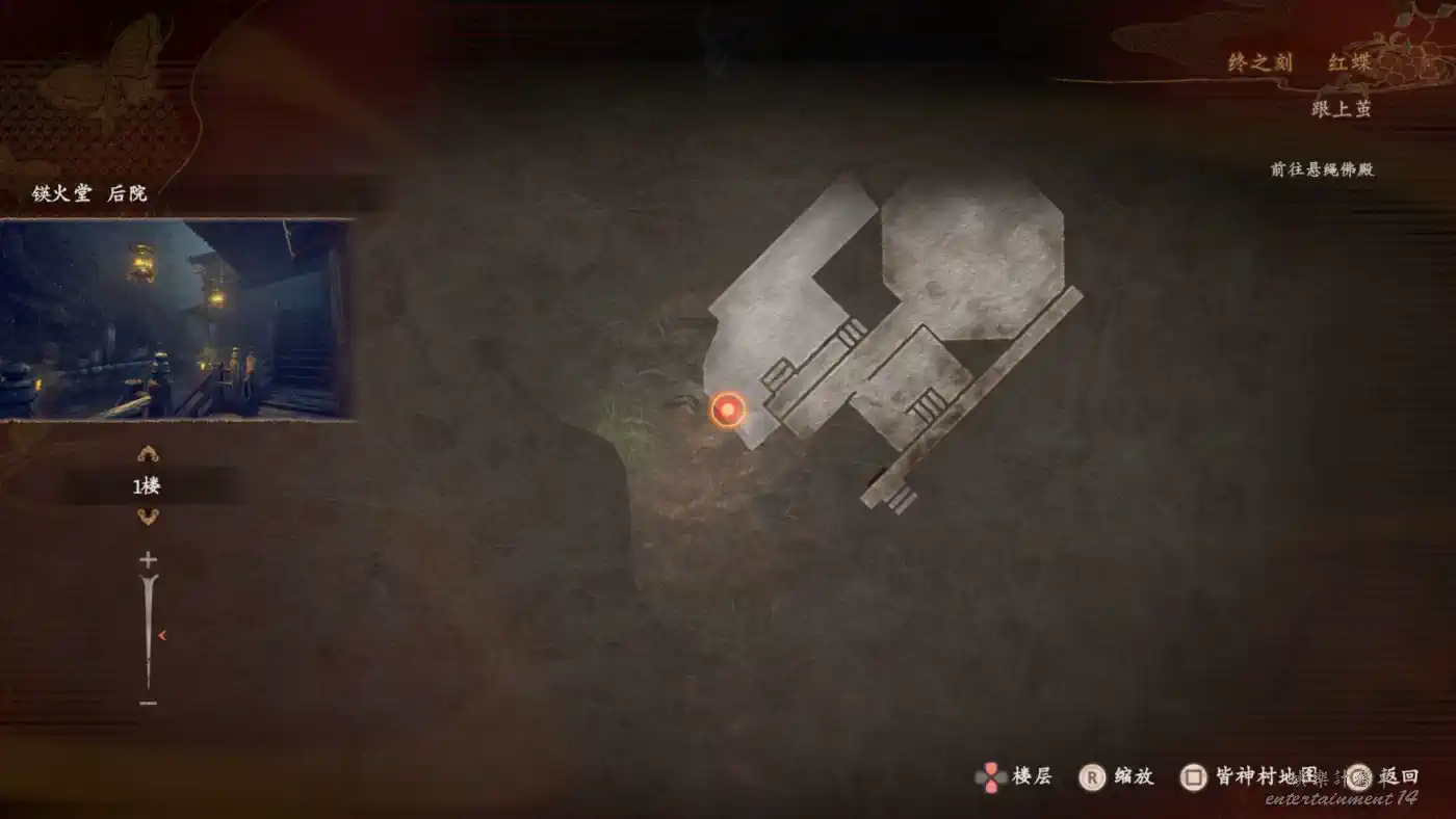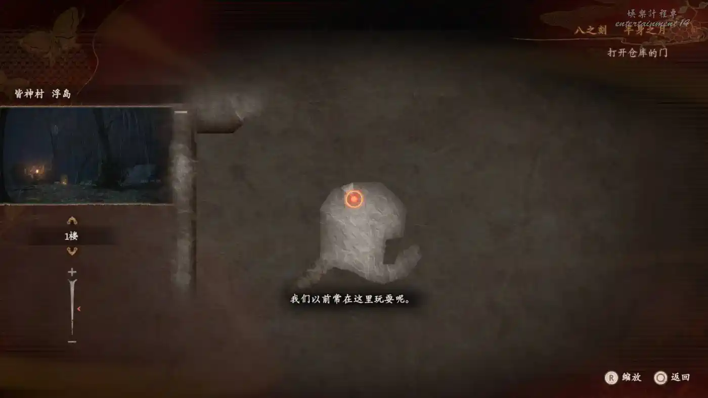 來到鍈火堂,從底下蹲走到後院,可以看到小孩們的浮靈。然後需要玩一輪主線同款捉迷藏