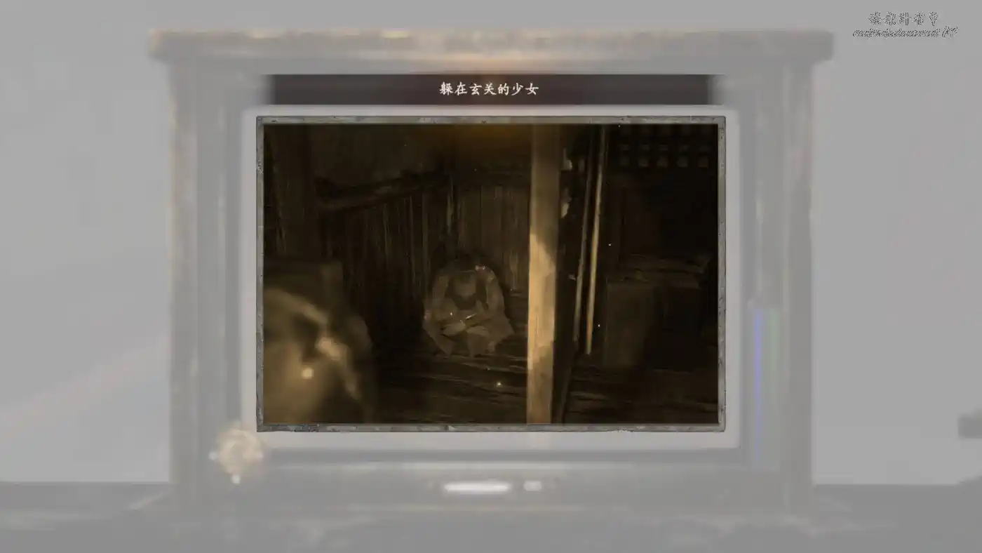前往大廳,曝光拍到垂首的女人,之後可以撿到【碎掉的螢石】