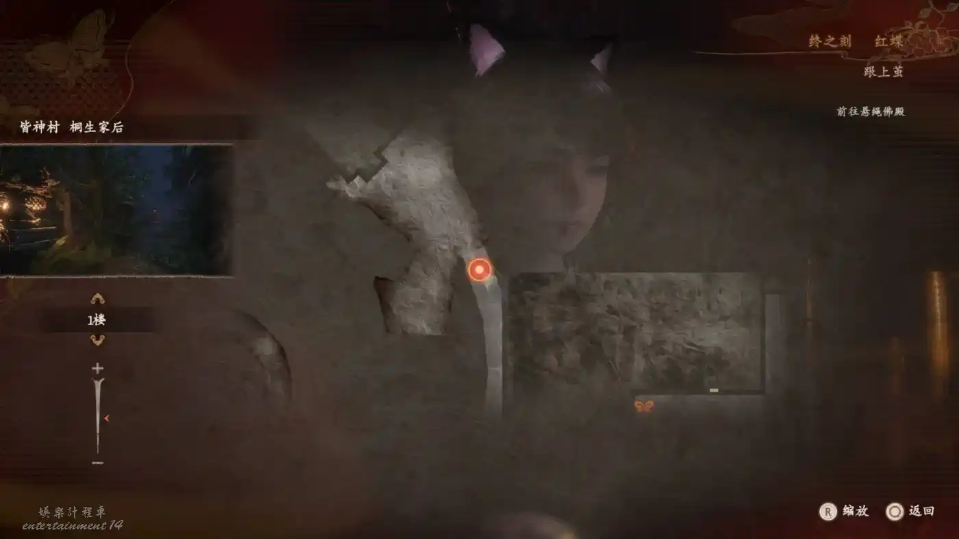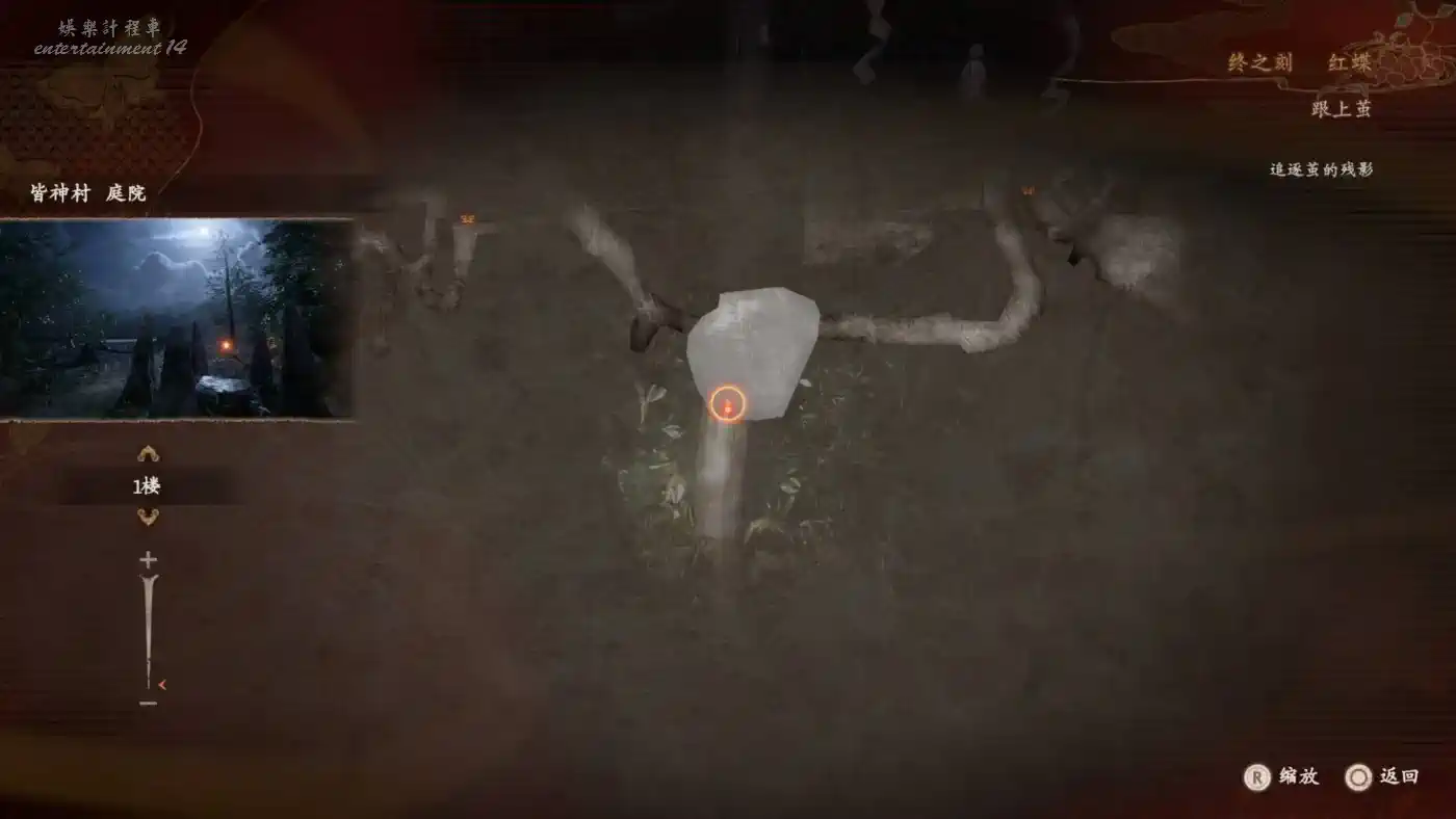前往【皆神村 庭院】,可以看到小時候姐妹的浮靈,拍照並撿取【發光的澪的靈石碎片】