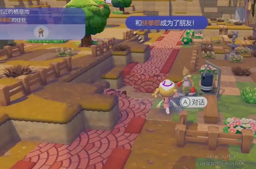 棲息地建成後,與快拳郎深度對話,它會告知荒野高處藏有特殊寶物,委託百變怪前往高地頂端取回寶物。按照任務指引,從健身區出發,往地圖西北方向的高地行進,沿途會有小型碎石擋路,直接用已解鎖的碎岩技能破除即可,全程無需繞路,順著任務標記走就能抵達高地入口。