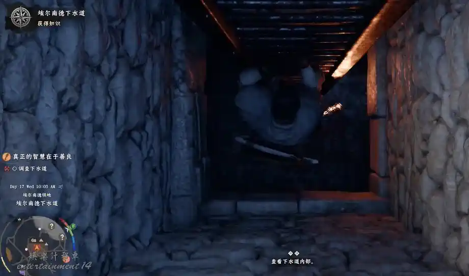 待男子離去後,開啟下水道入口,拾級而下,即可解鎖隱秘空間“埃爾南德下水道”。