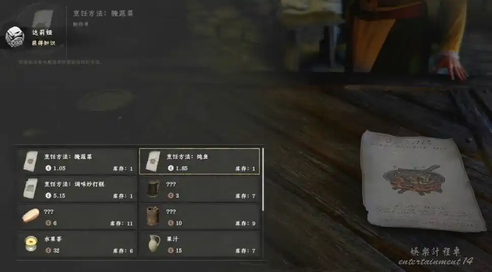 與此同時,酒館前台可購得“醃漬時蔬”、“燉煮鮮魚”、“香煎打糕”三款食譜。