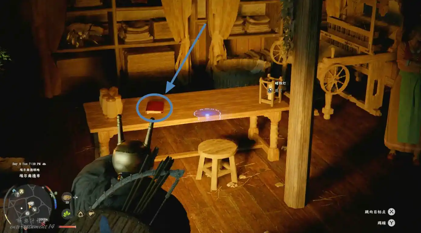 上樓梯到二樓,樓梯口正前方書架左邊可拾取“鑲嵌紅寶石的黃金匕首”。