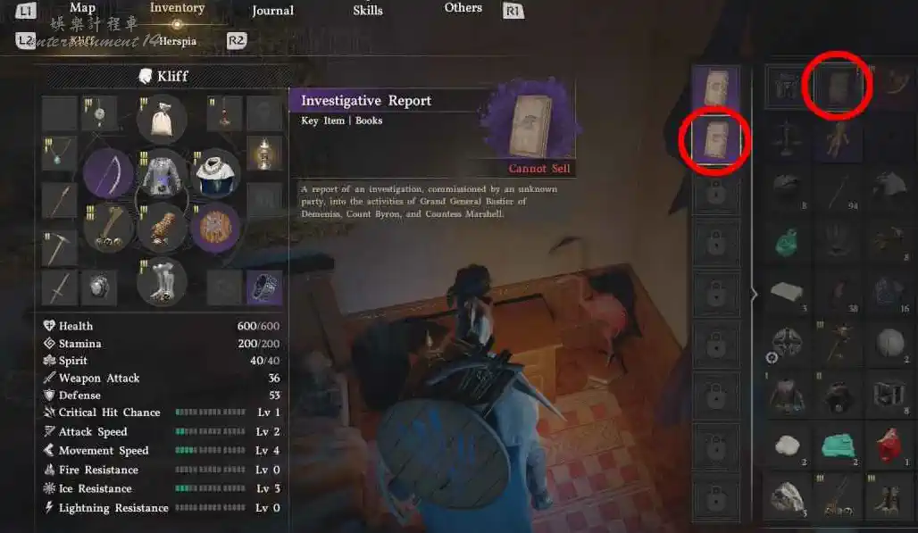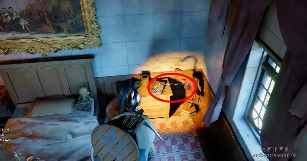 裡面有一張床,床頭櫃上可以拿到關鍵物品 《調查報告》。