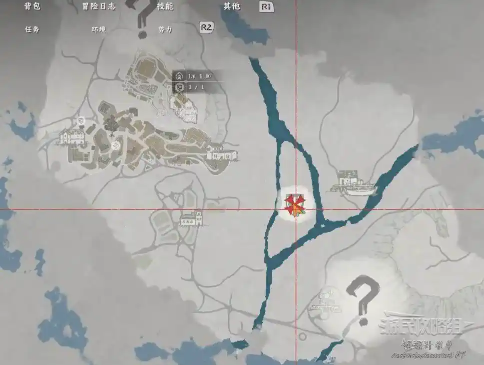 在埃爾南德城東南下圖位置,拿到【被封印的阿比斯神器】,對應挑戰任務“踏風之衡”:走鋼絲移動10米。