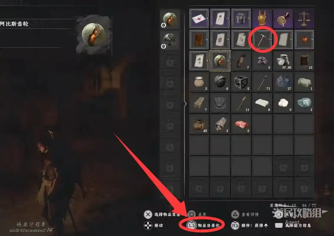 當某類道具過多時,注意使用物品欄下方的“物品個性化/物品目錄化”可以整理背包,將同一類的道具合併到一個目錄下,比如鎬頭、掃帚等各種生活工具就可以合併到一個目錄。