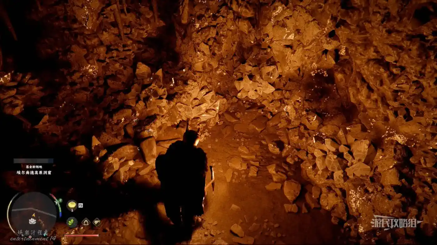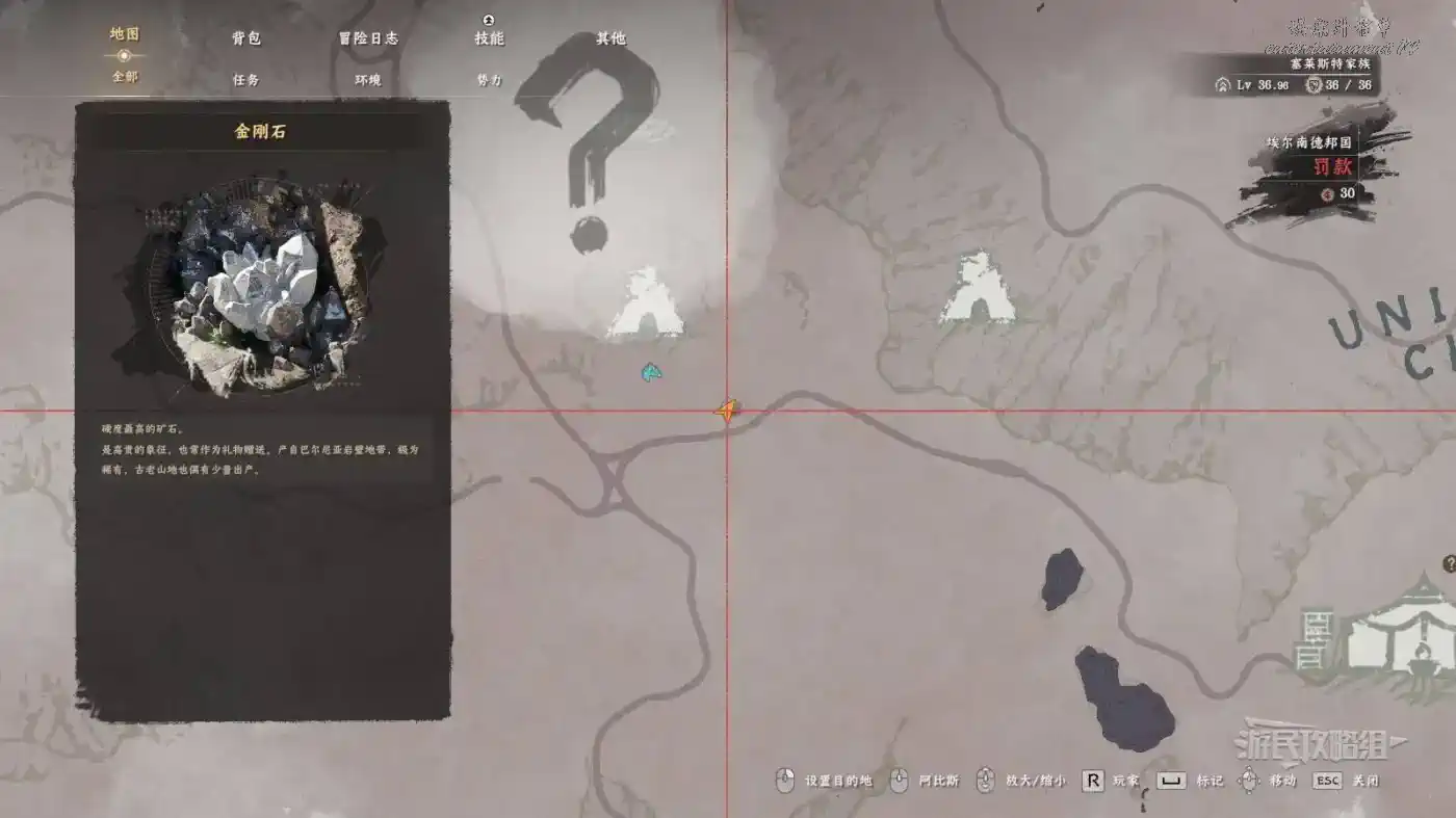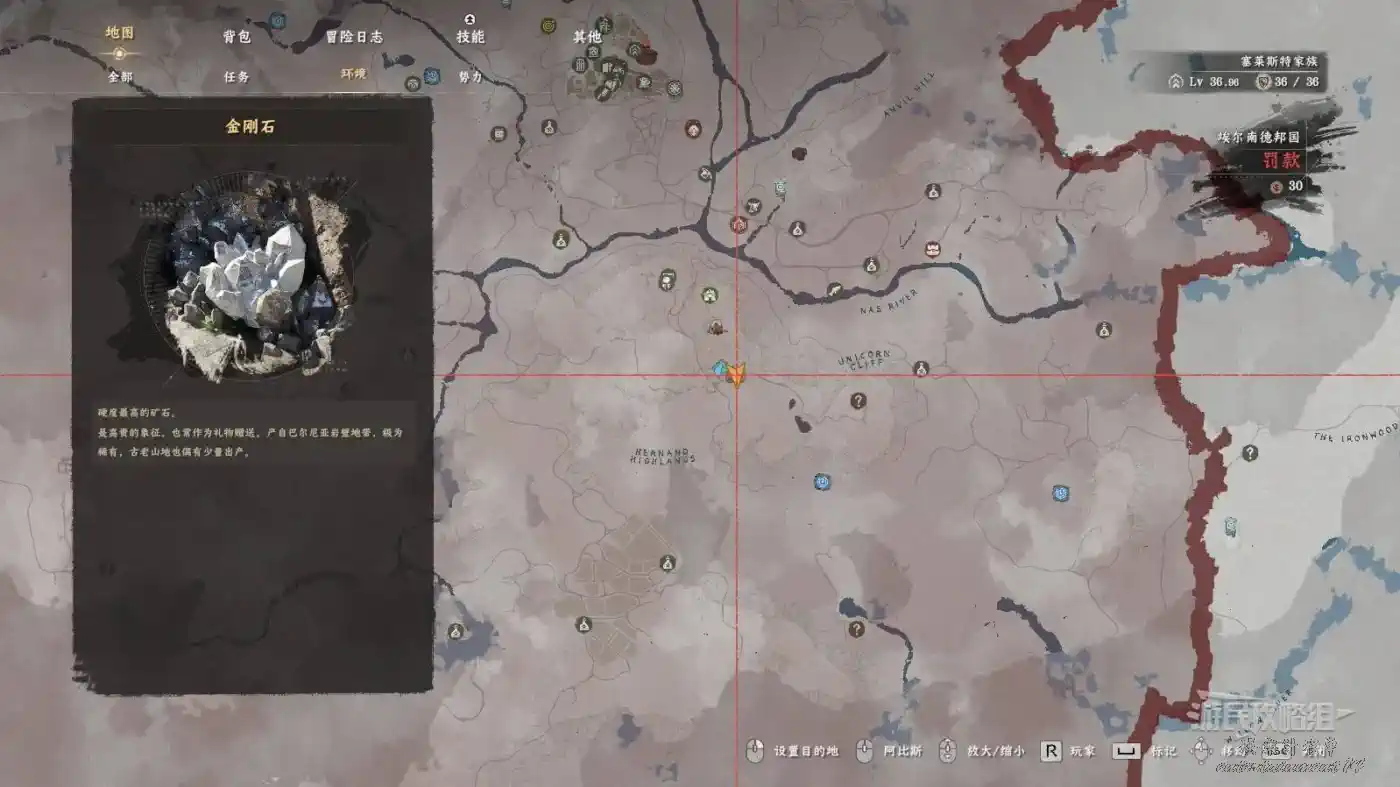 ③在後期區域用鎬開採稀有礦石(詳情可以參考下文)。整個地圖初始就是全部開放的,可以直接前往東北邊的紅色沙漠地區(地圖上顯示CRIMSON DESERT),此區域更容易開採到稀有礦石,售價也更高。