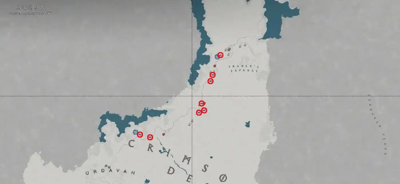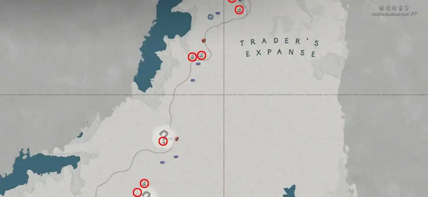 ④在地圖上紅色沙漠地區北部,通往VARNIA的道路沿線,TRADER’S EXPANSE以北。