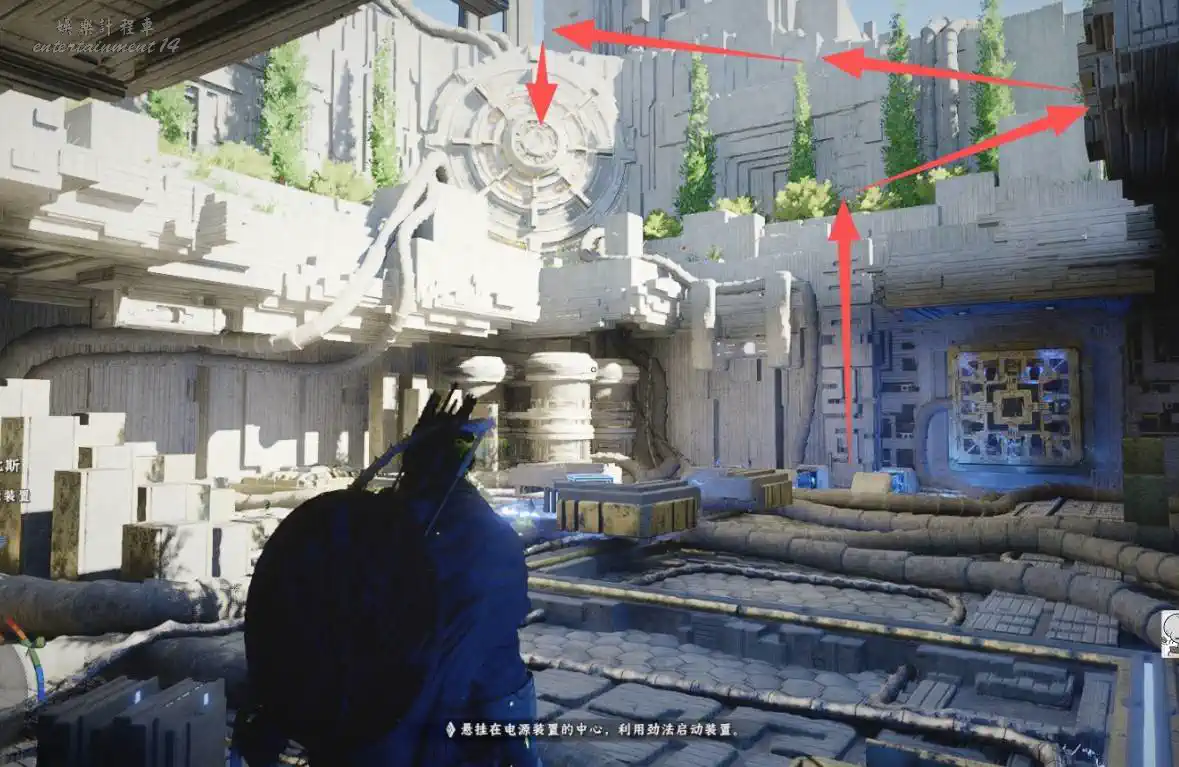 從上面扒住牆壁,通過攀爬或移動,進入轉輪中間位置。在轉輪中間使用“勁法”啟動它。