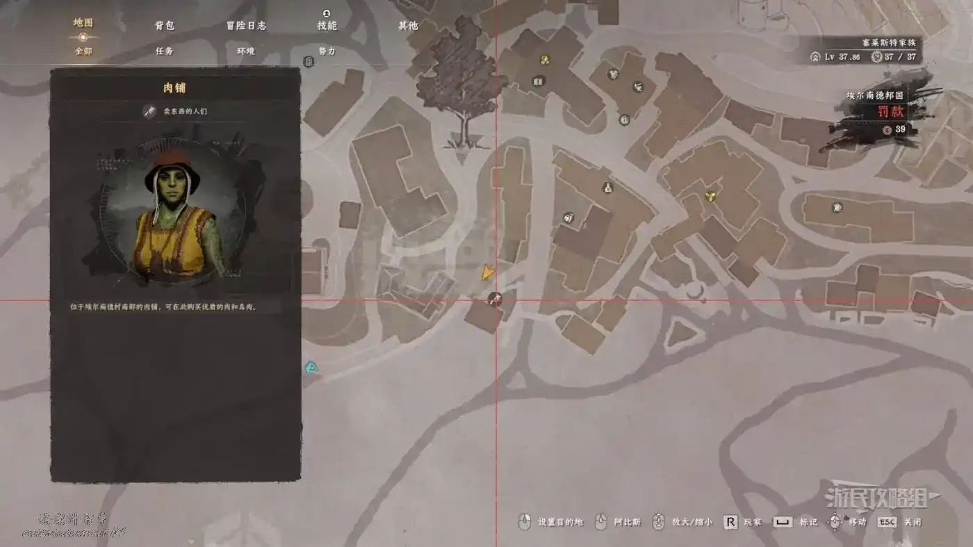 從各城鎮肉鋪可以購買各種肉類,例如埃爾南德鎮的肉鋪,之前沒有探索過的話會在地圖的【環境】選項卡中以“?”圖示標記顯示。其出售的肉類如下圖所示。