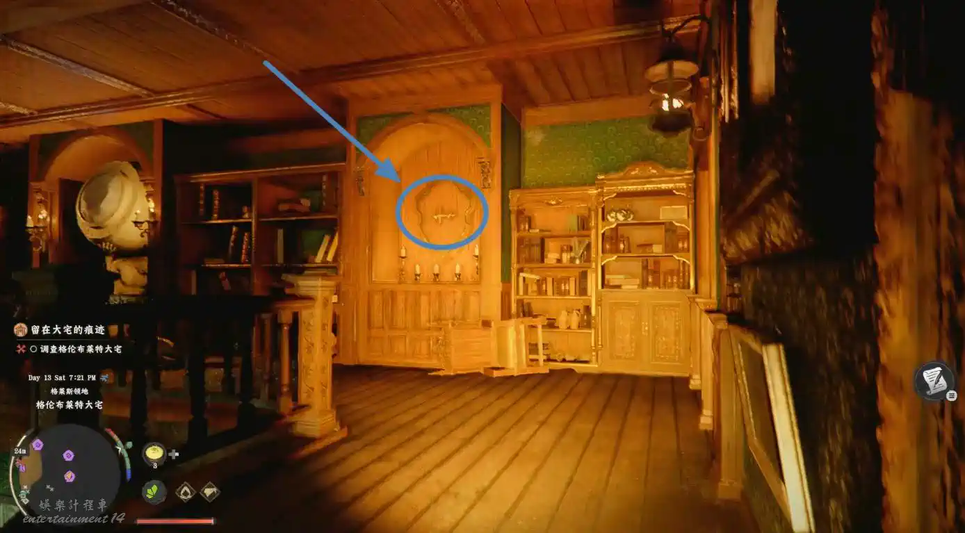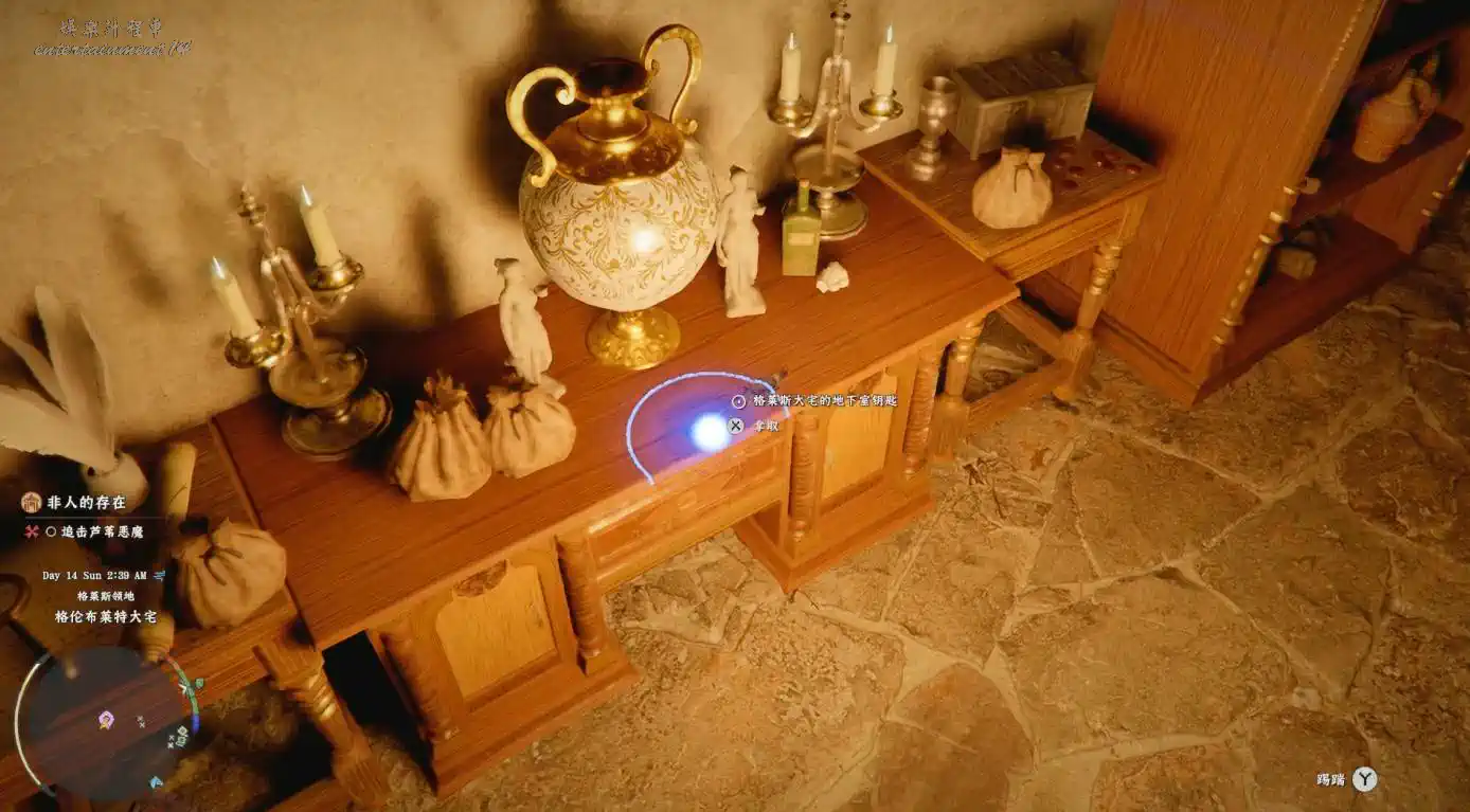 中間藍色光圈位置拿取“格萊斯伯爵的日誌”(可選)。