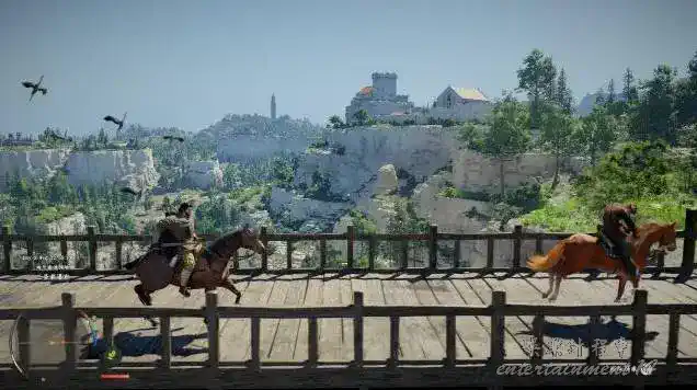 在遠景渲染方面,它確實有一點大表哥的味道:大部分場景沒有突兀的高山去刻意遮擋視線,即使在極遠處,樹木、植被和地標建築也能清晰可見。這種“所見即所得”的通透感,總能激起玩家“總有一天我會去到那裡”的探索欲。