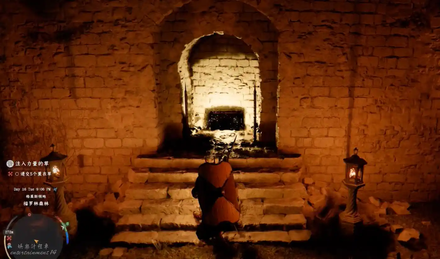 點亮兩個石柱開門,打開寶箱獲取。