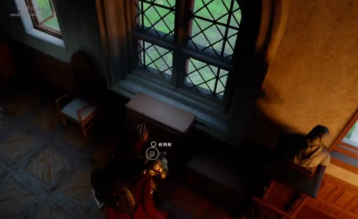 上副樓二樓,在房間櫃子裡搜刮,拿到軍械庫鑰匙。