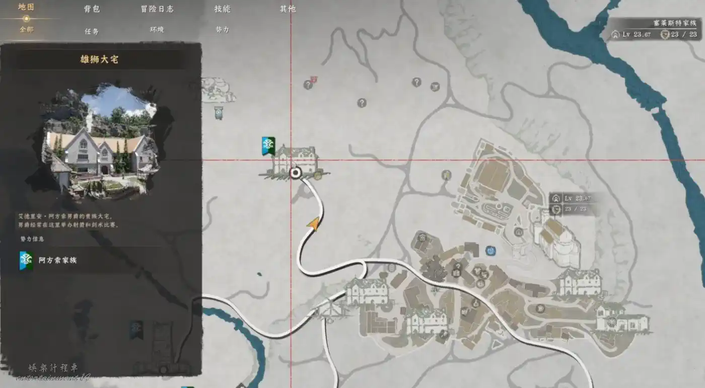 推進主線,解鎖雄獅大宅區域(埃爾南德城西北方向)。