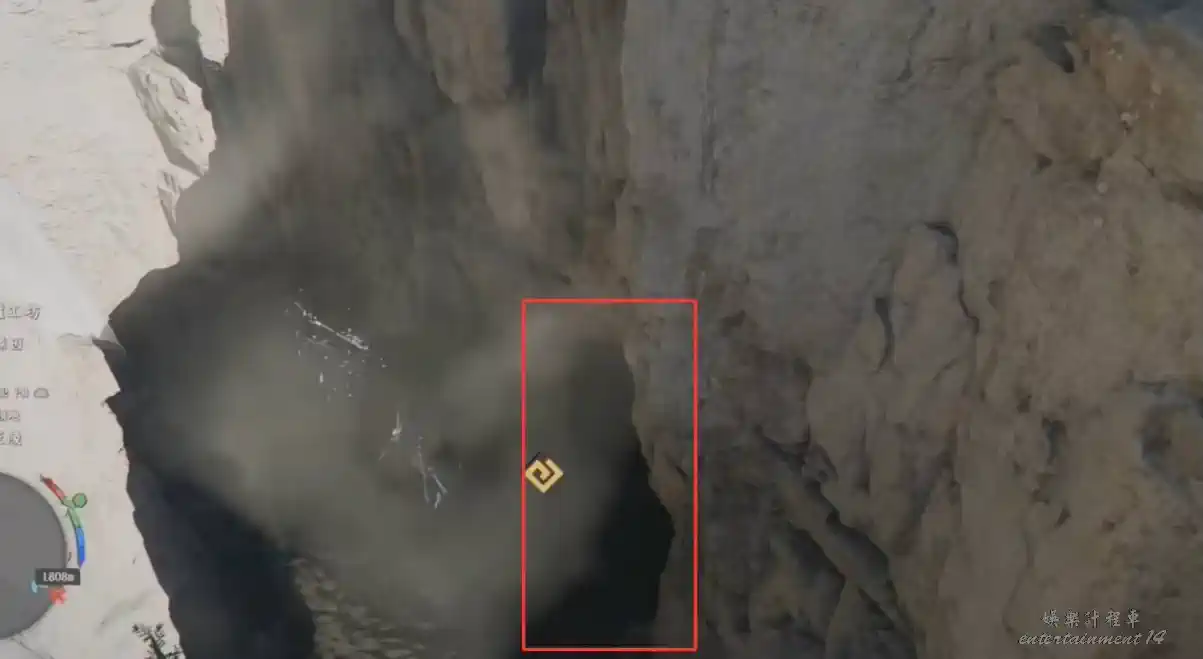 落地後立刻看右手邊,找到隱蔽山洞入口。
