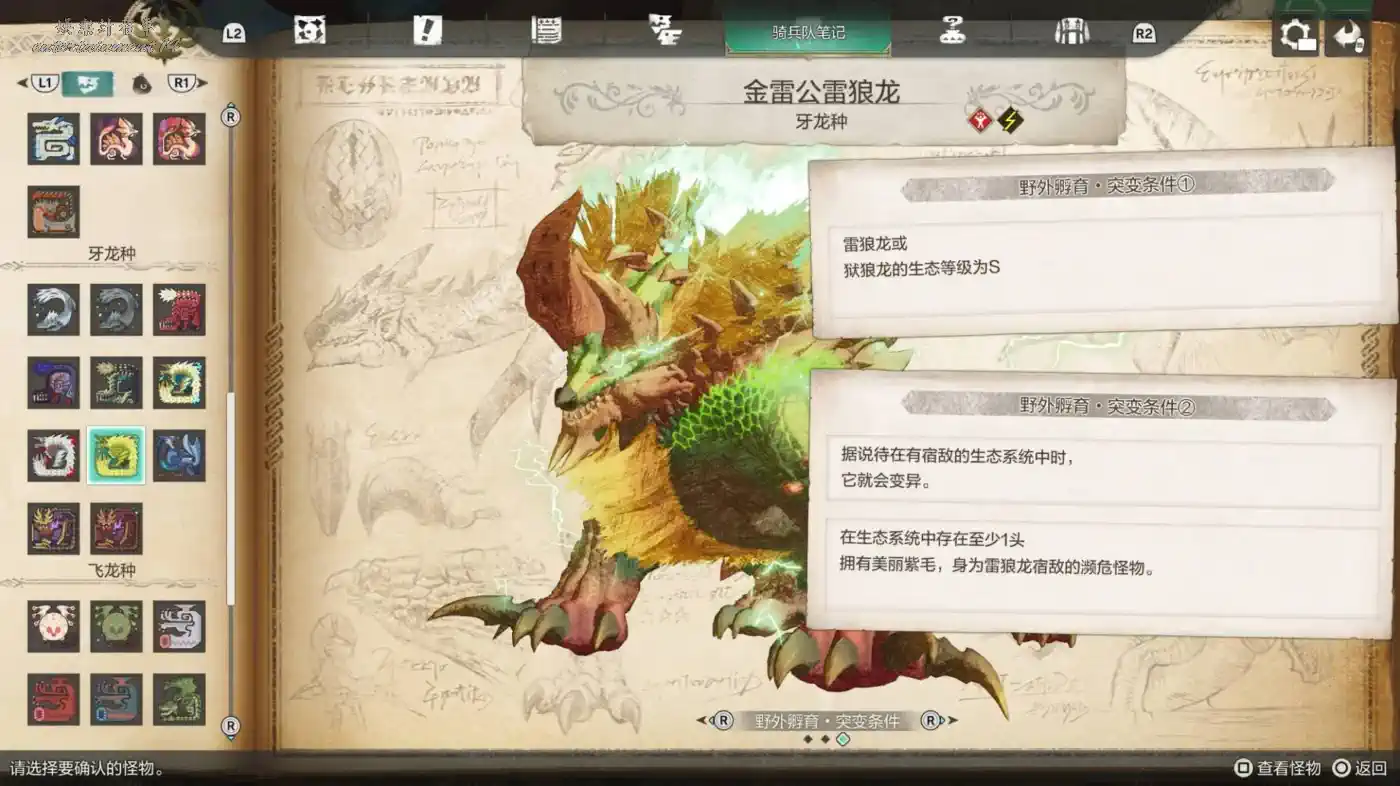 雷狼龍或獄狼龍的生態等級為S
