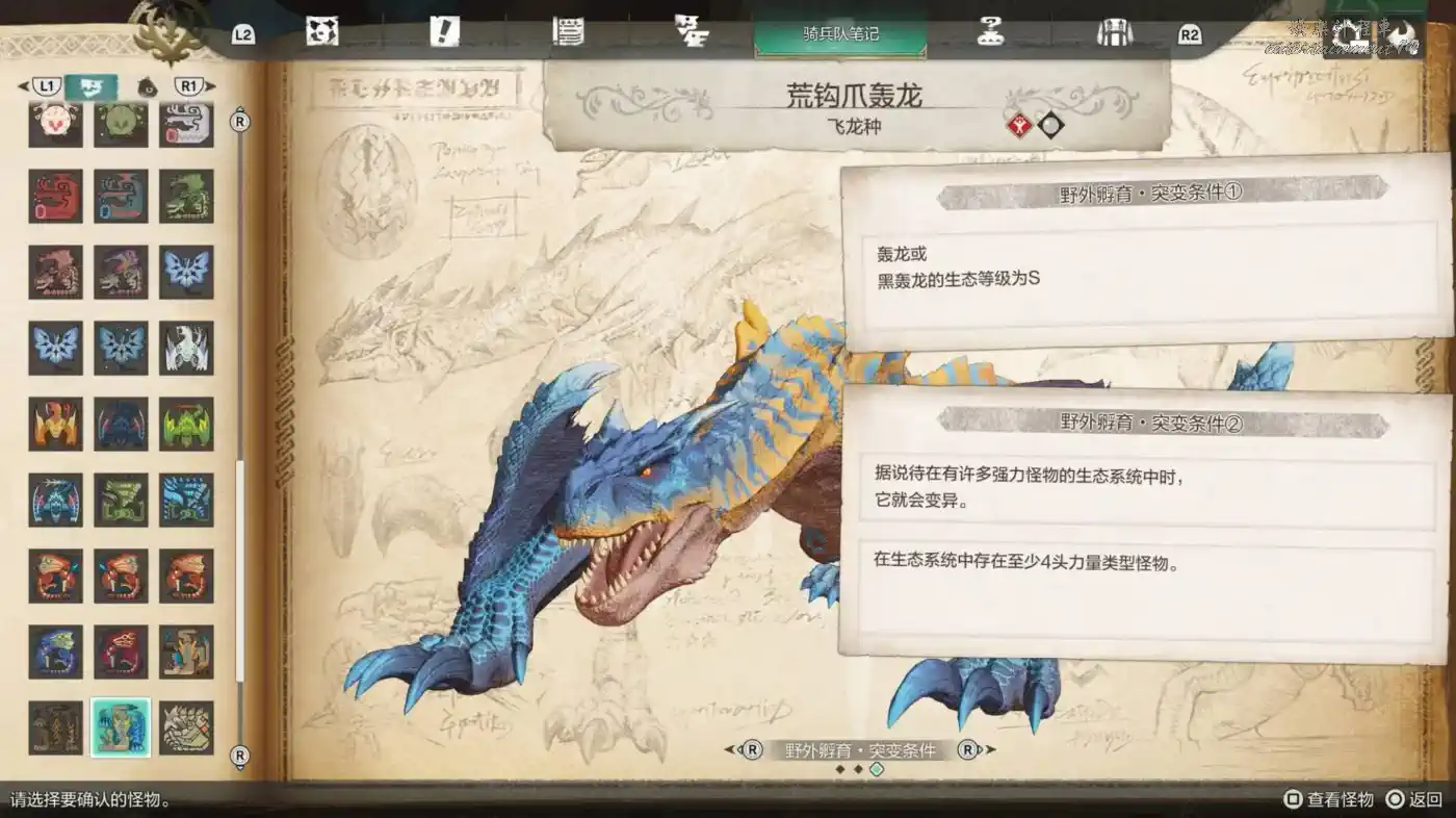 生態系統中存在至少3頭等級比黑狼鳥高的怪物。
