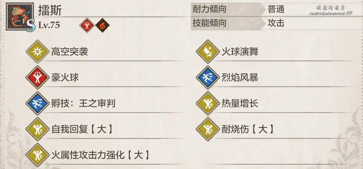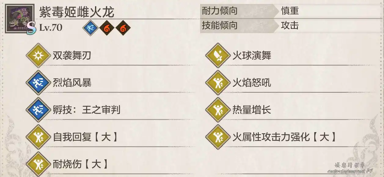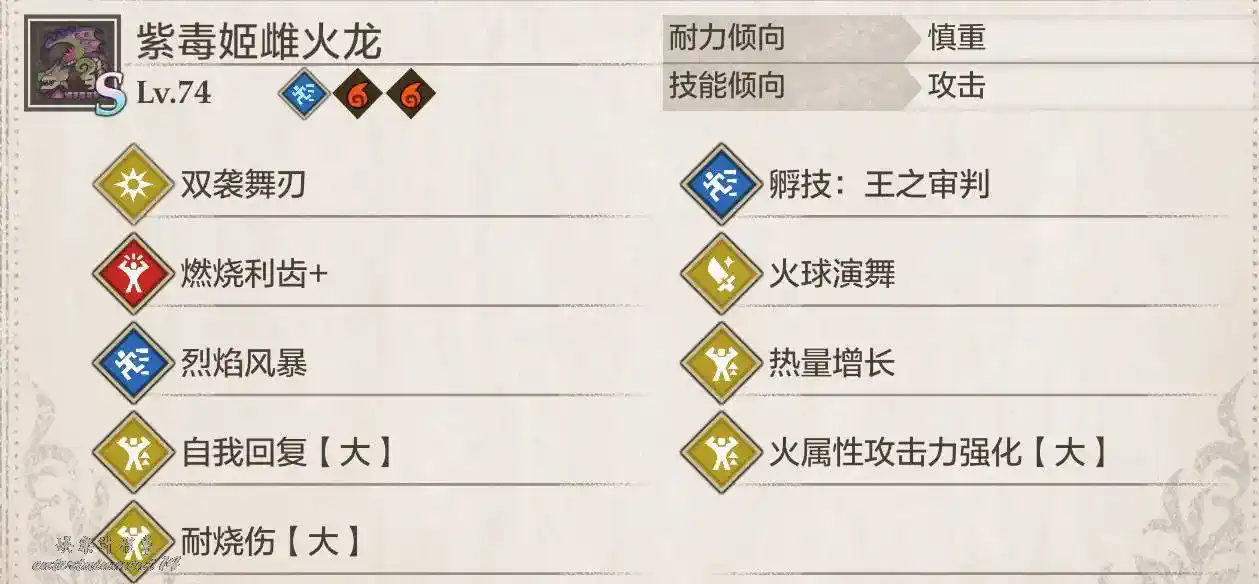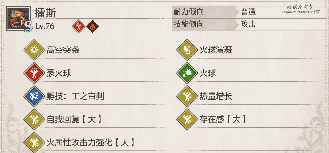 侵獸水龍普通狀態為技巧(2星弱雷,1星弱火),憤怒狀態為力量(弱火),侵化狀態為技巧(弱火,不會有猜拳)